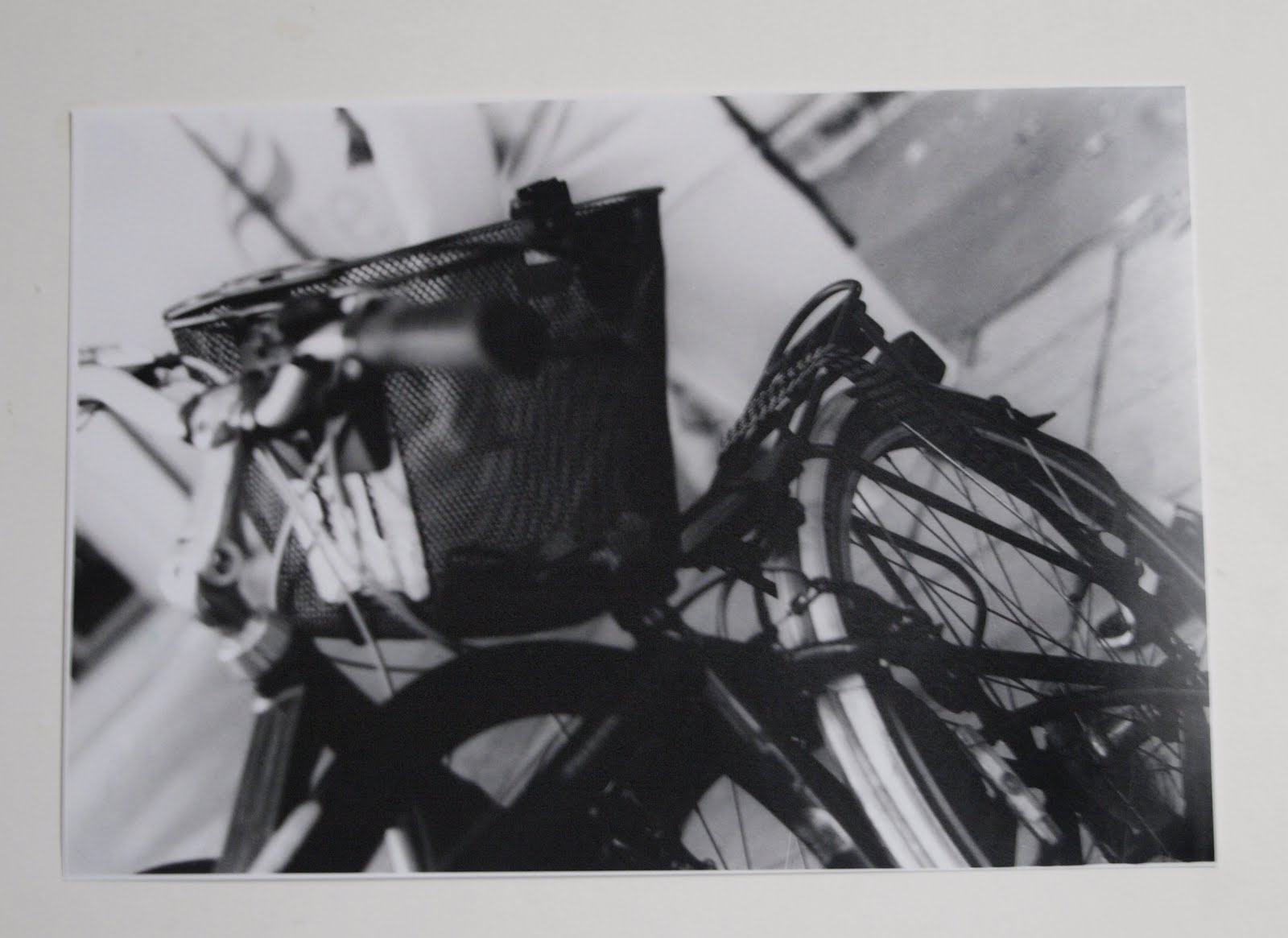 Antras projektas: Natural Light. Turejome pasirinktinai padaryti 4-6 nuotraukas, as pasirinkau viduriuka ir padariau 5. Turbut ir taip gan aiski tema - dviraciai. juoda/balta juosta. Patys ryskinome juostas, patys dareme nuotraukas. (Taip pat perfotografuota)/ Second project: Natural Light. We had to make 4-6 picture for this project. i chose the middle - 5. I believe my theme is very clear - bikes. Black and white film. We developed films ourselves and made pictures ourselves as well. (As well, photographed photos.)